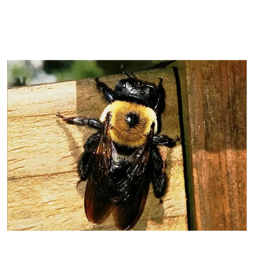 Carpenter bees are wood-boring bees. The Carpenter Bees, have a shiny, hairless black thorax. The very bottom of the thorax is jet black. There is a yellow stripe above that, along with a smaller blank band above that at the point where the thorax connects to the waist. Carpenter bees are strictly found above ground in wood.